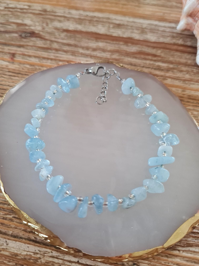 Bracelet pierre naturelle aiguë marine 14€.