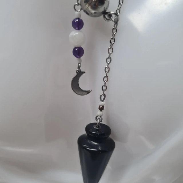 Collier pendule , chaîne en acier inoxydable avec système aimanter pour une utilisation simple et efficace ne quitte plus votre pendule ! 😉 onyx accompagné de l'œil de tigre , améthyste et pierre de lune .