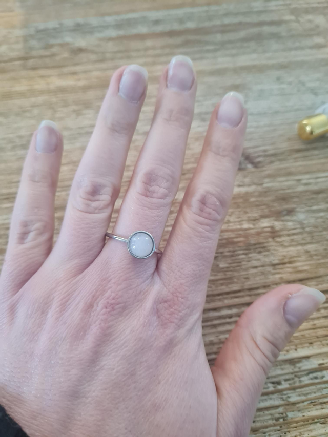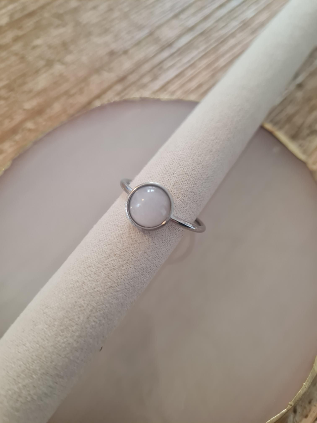 Bague ajustable acier inoxydable et pierre naturelle quartz rose.